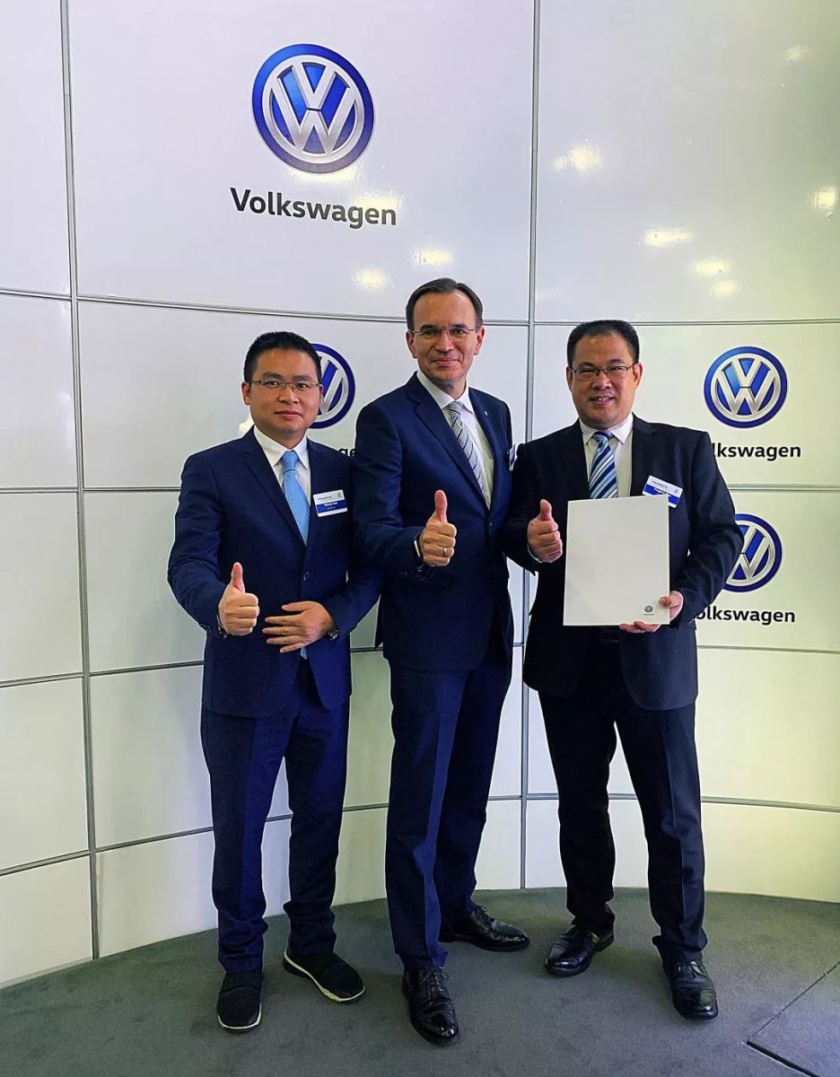 盈眾汽車代表孫聘仁、高廷建與大眾集團(tuán)領(lǐng)導(dǎo)及獲獎(jiǎng)中國經(jīng)銷商伙伴合影留念