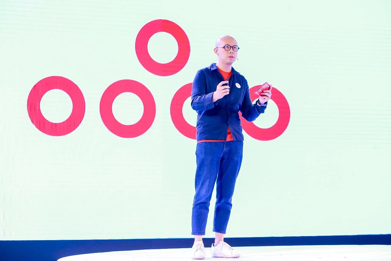 設(shè)計(jì)師黃揚(yáng)現(xiàn)場(chǎng)解讀盈眾全新品牌形象。他表示,新Logo對(duì)原有品牌形象進(jìn)行了傳承與創(chuàng)新,五個(gè)紅色圓環(huán)通過極簡(jiǎn)手法重新排列,形成更具創(chuàng)新感和未來感的圖形符號(hào),象征著盈眾一直追求的和諧人車關(guān)系。