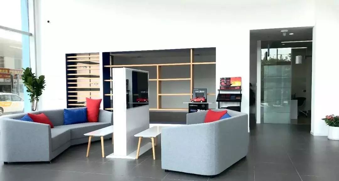 展廳設計富有工業(yè)風,店內(nèi)空間寬敞高雅。整潔明亮的大廳,點綴著紅、藍主題色,色彩俏皮的座椅和抱枕,讓時尚年輕的感覺撲面而來。大幅落地玻璃窗讓陽光自然地灑滿展廳,氛圍溫和又愜意。