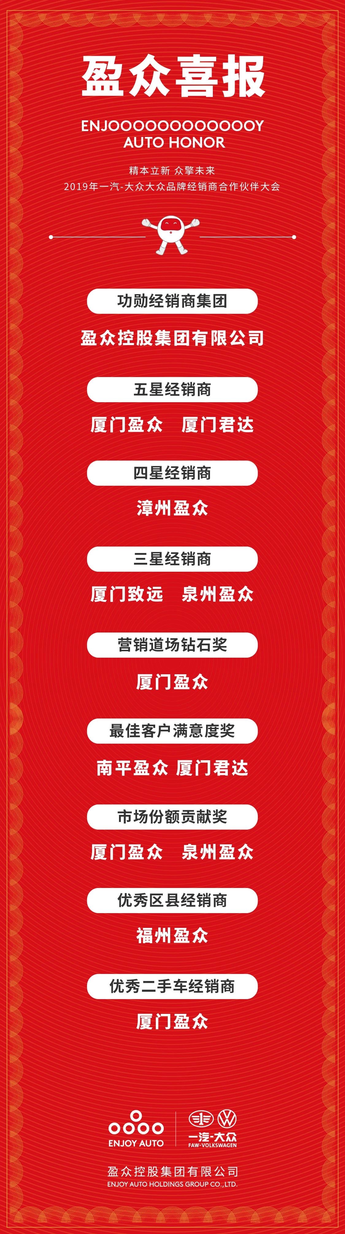 盈眾榮獲一汽-大眾功勛經(jīng)銷(xiāo)商集團(tuán)、五星經(jīng)銷(xiāo)商等多項(xiàng)大獎(jiǎng)