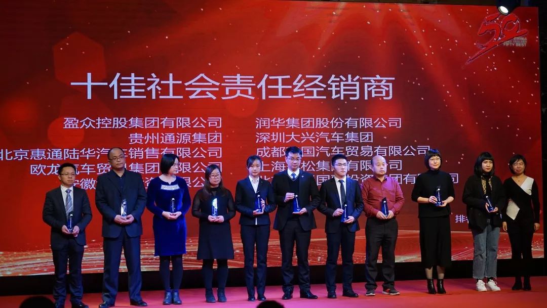 在頒獎典禮上,盈眾控股集團榮獲“十佳汽車營銷集團”和“十佳社會責任經(jīng)銷商”稱號。