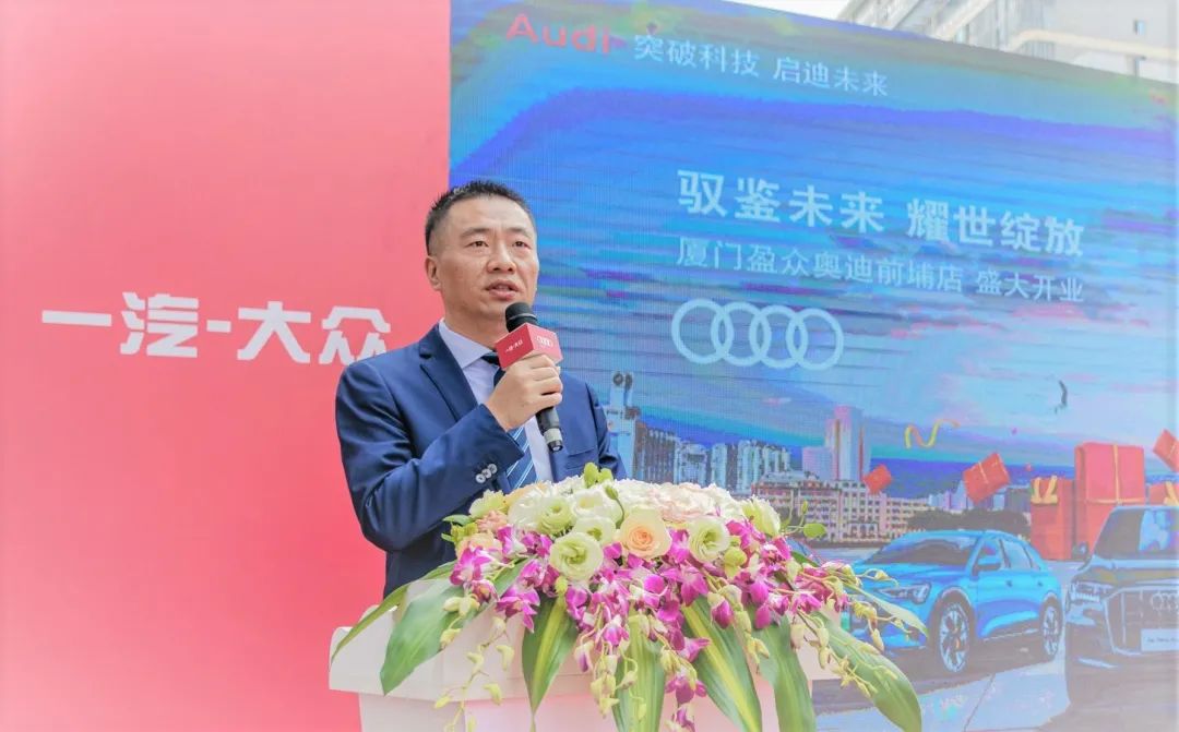一汽-大眾奧迪銷售事業(yè)部東南區(qū)區(qū)域主管銷售經(jīng)理葉鵬向廈門盈眾奧迪送上了誠摯祝福,并且表達了自己的希冀:希望廈門盈眾奧迪前埔店全新數(shù)字化體驗中心以其示范效應,帶動一汽-大眾奧迪品牌在新區(qū)域的發(fā)展與蓬勃;也衷心希望廈門盈眾奧迪前埔店能夠不忘初心,砥礪前行,繼續(xù)為廣大客戶提供優(yōu)越的購車服務,為盈眾集團創(chuàng)造更多效益,也為一汽奧迪的份額做出更大的貢獻。