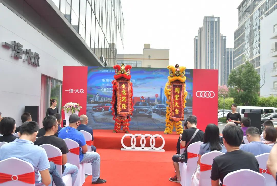 一汽-大眾奧迪銷售事業(yè)部東南區(qū)區(qū)域主管銷售經(jīng)理葉鵬、一汽-大眾奧迪銷售事業(yè)部東南區(qū)區(qū)域服務與二手車經(jīng)理包洋、廈門盈眾至遠汽車銷售有限公司總經(jīng)理嚴勁松等,共同為廈門盈眾奧迪前埔店全新數(shù)字化體驗中心剪彩慶賀。精彩紛呈的舞獅表演將現(xiàn)場氣氛推向高潮。