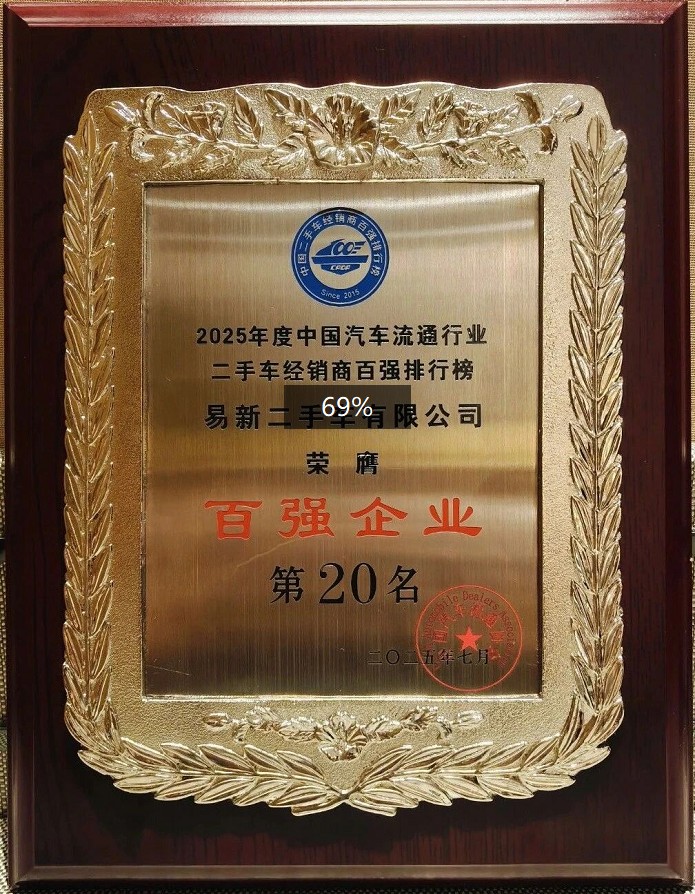易新二手車入圍“2025年度中國汽車流通行業(yè)二手車經銷商百強排行榜”,位列全國第20名。